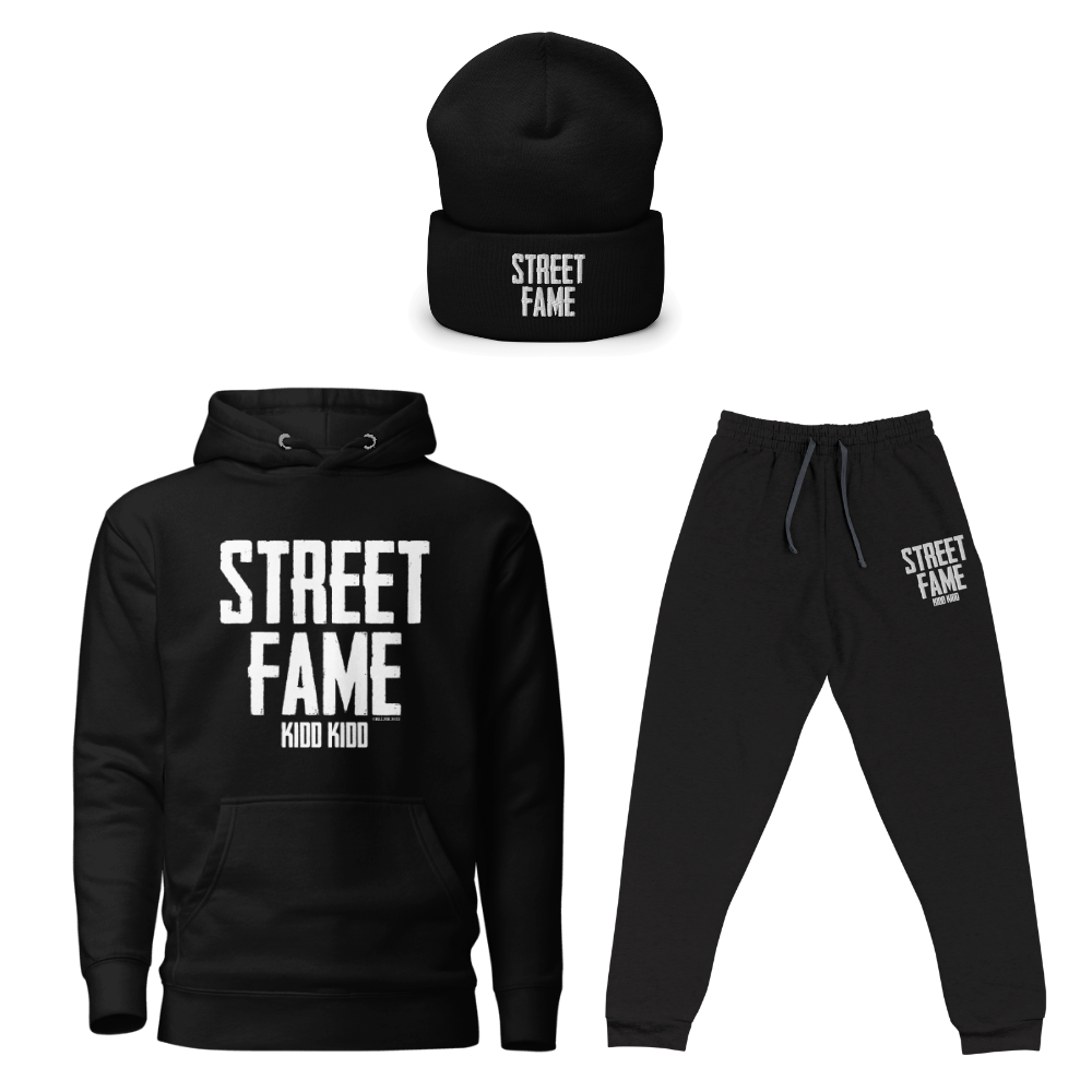 This exclusive set includes the standout Street Fame Hoodie and matching Street Fame Beanie, delivering warmth, comfort, and that unmistakable street-ready style. Whether you are exploring the city, hanging out with friends, or keeping it chill at home, this bundle keeps you looking sharp and staying warm.